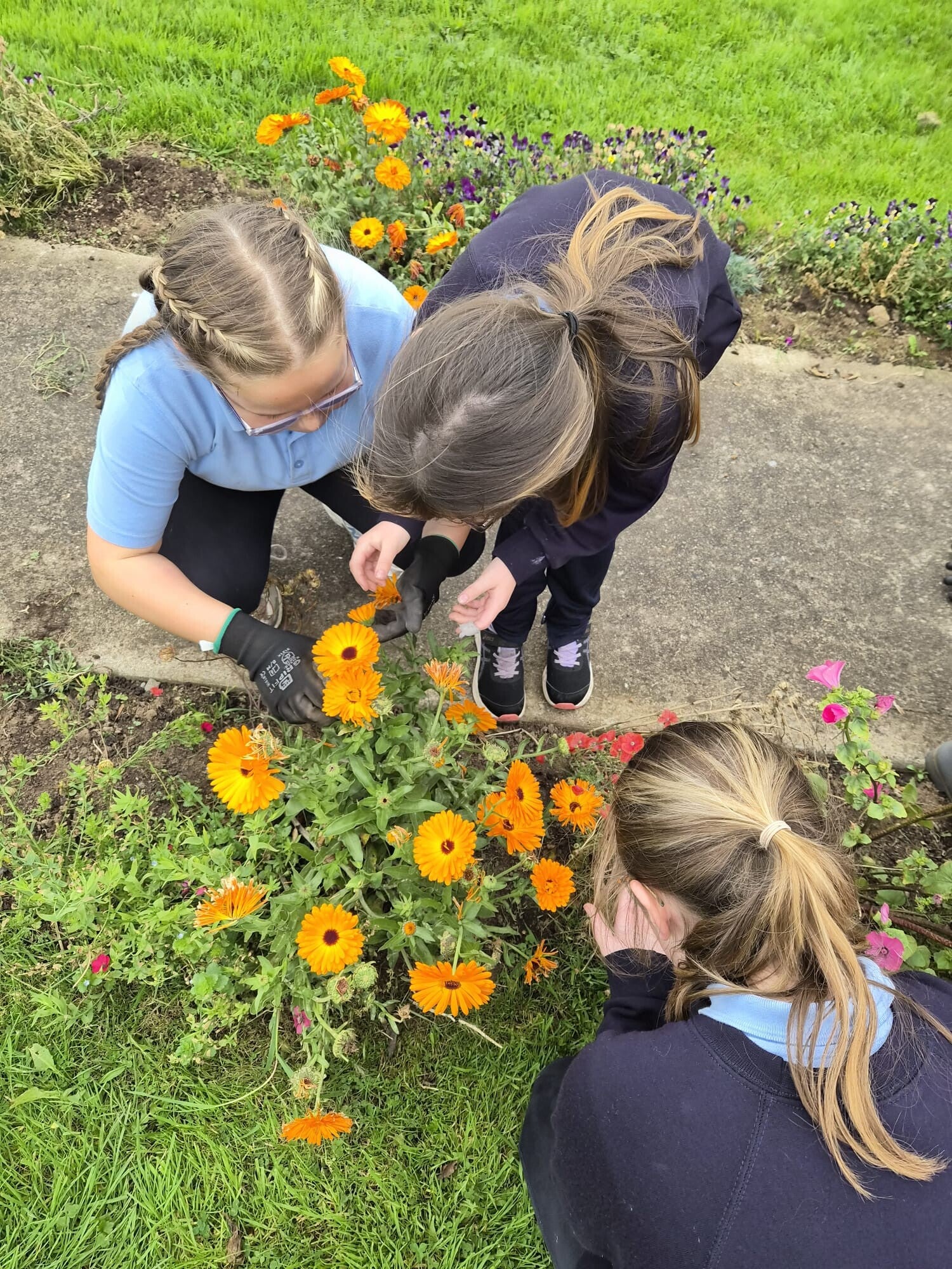 Our school garden is a busy and colourful space where pupils learn through planting, caring, and harvesting. We grow strawberries, blackberries, herbs, carrots, onions, and potatoes, using many of them later in our cooking and baking. Pupils also help to maintain our Bee Friendly Garden, a space that encourages kindness and supports pollinators through the flowers we plant. Gardening teaches pupils about growth, pollination, and caring for the environment. They harvest seeds to store for the following year and learn how small actions can make a big difference to our planet.